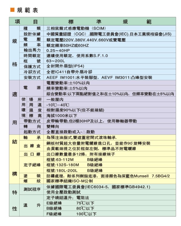 7.耐高溫馬達(dá)電壓:單相220V 三相220V/380V,2極與4極/6極都可訂做.