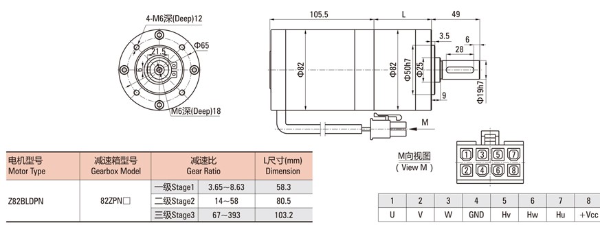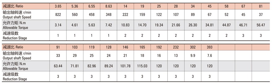 無(wú)刷直流行星減速電機(jī)參數(shù)表: