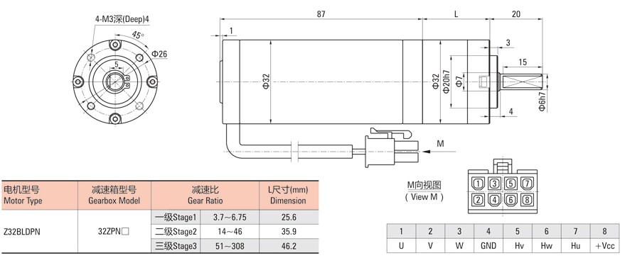 外徑32直流無刷行星減速電機(jī)外形圖: