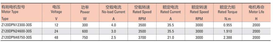 有刷直流技術(shù)參數(shù)表: