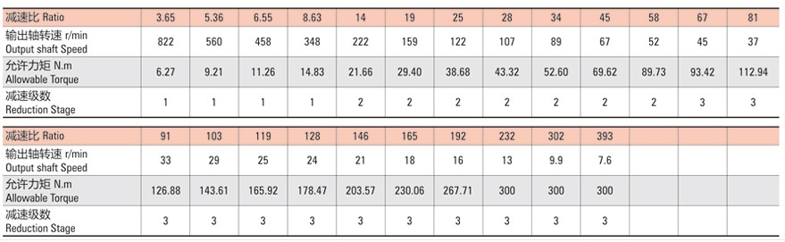 有刷直流行星減速電機參數(shù)表: