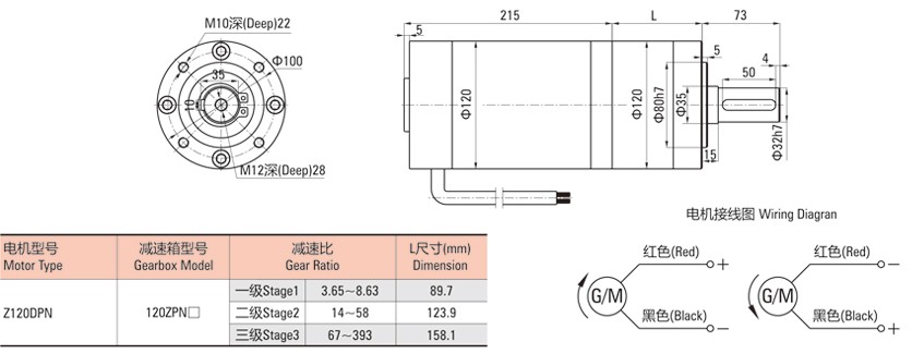 外徑120直流有刷行星減速電機外形圖: