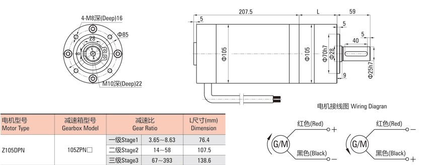 外徑105直流有刷行星減速電機(jī)外形圖: