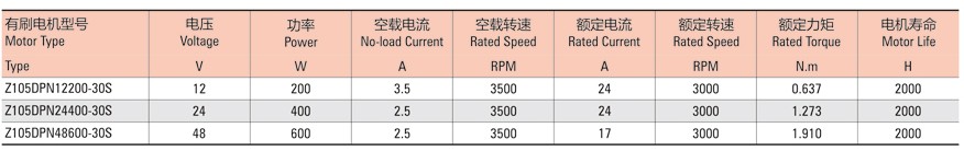 有刷直流技術(shù)參數(shù)表: